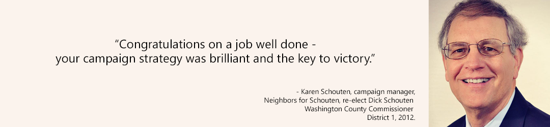 Building the most effective campaign message really means finding the candidate’s voice.  We help you find the best way to express your message, and develop the material (website, mailers, door hangers, voters pamphlet statement) to present a consistent and effective message.