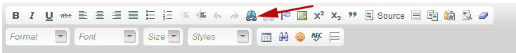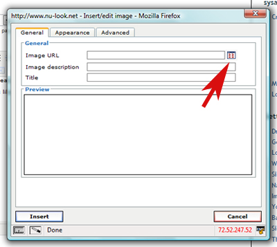 Click where you want the image to go. Go to the WYSIWYG toolbar and click on the button that looks like a little house.